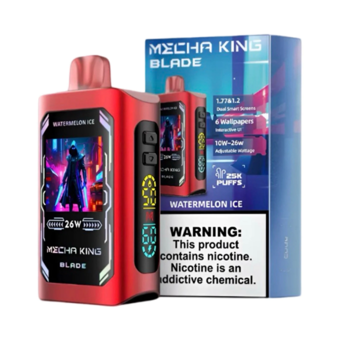 🤖🍉🔥Built for vapor power and flavor punch, this Mecha King Blade delivers massive clouds and a rich, sweet watermelon taste with a frosty bite. This is your watermelon ice powerhouse if you enjoy strong flavor with bold delivery.