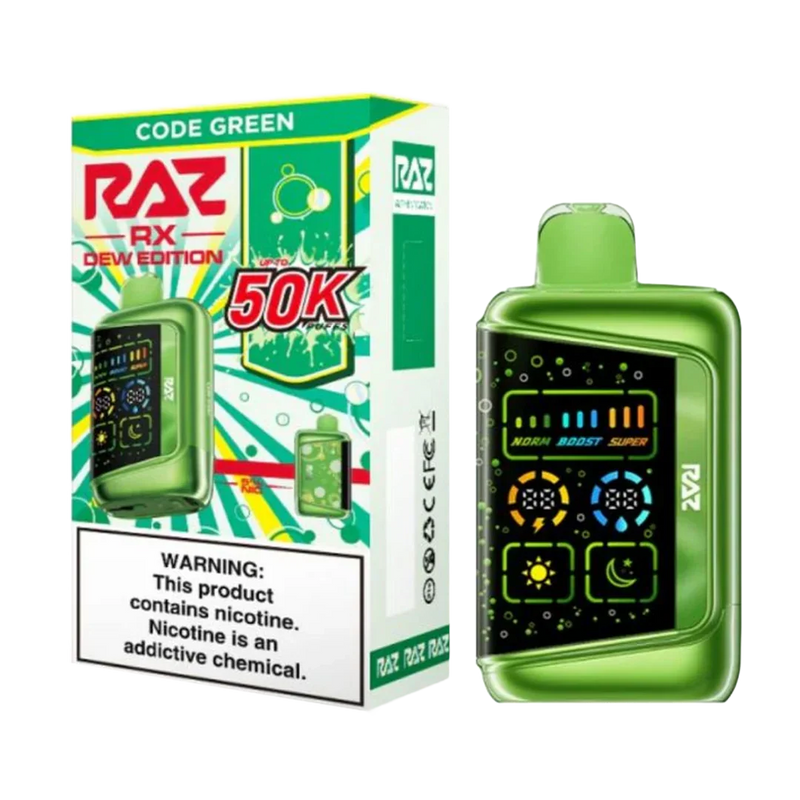 Code Green – RAZ RX50K is a high‑performance disposable vape designed for flavor enthusiasts who want long-lasting use without sacrificing ease of use. It blends a substantial puff capacity, powerful customization, and a bold citrus-lime flavor for a satisfying, all‑in‑one experience.