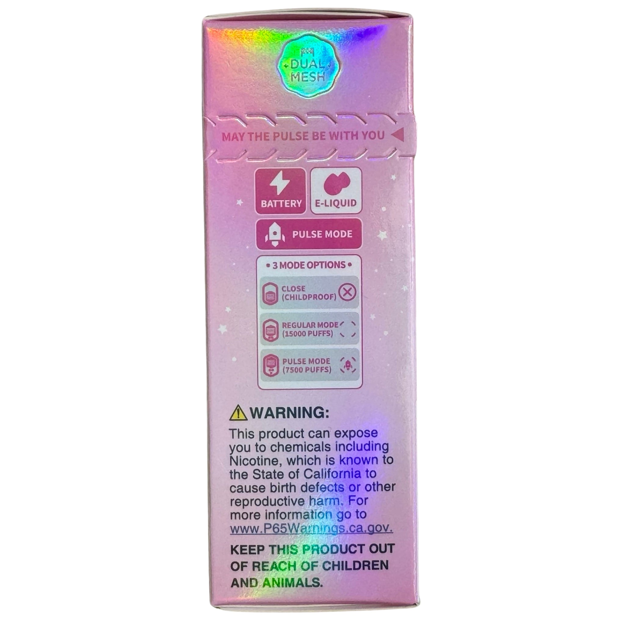 - Two modes: Regular for steady puffs or Pulse for bursts of vapor.