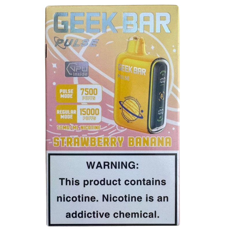 Meet the Strawberry Banana - Geek Bar Pulse 15000, a flavor-forward disposable vape designed for vapers who crave a long-lasting, hassle-free experience. With a rich strawberry-banana profile and a robust set of features, it delivers both exceptional flavor and dependable performance.